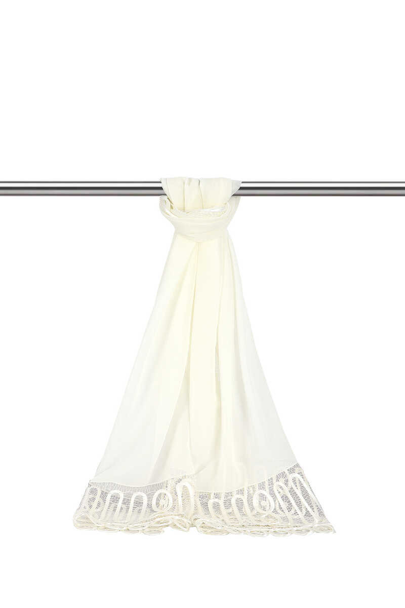 Add elegance to your important days with specially handcrafted White Lace Angles Scarfs. Silk ribbons were shaped by needlework and added to the crepe fabric by hand. Our product offers ease of use with its dimensions of 55x170 cm.
