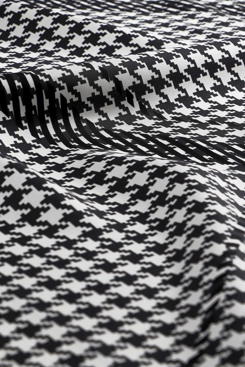 You, too, will feel the atmosphere of integrity in different beauty with the White Line Houndstooth Pattern Twill Silk Square Scarf, reflected in the unique elegance of silk. Our product; It offers ease of use with its 100% silk content and dimensions of 90x90cm.