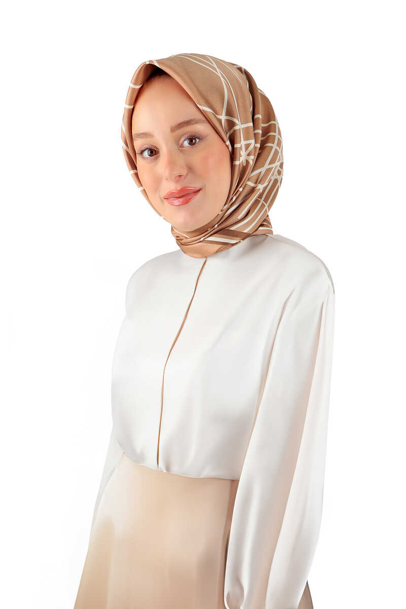 Bronze colored Echo patterned silk Square Scarf with an upright and solid stance that crowns your plain and simple look, appeals to every season with its wide color range in its design that symbolizes the emphasis of simplicity, away from all details. Our product; It offers ease of use with its 100% Twill Silk content and dimensions of 90 x 90cm.