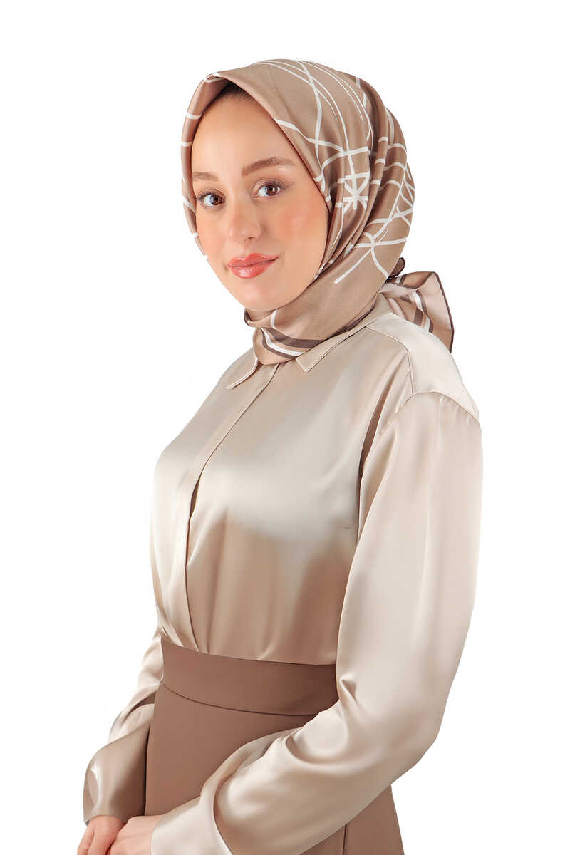 The Milky Brown colored Echo patterned silk Square Scarf, with an upright and firm stance that crowns your plain and simple look, appeals to every season with its wide range of colors in its design that symbolizes the emphasis of simplicity, away from all details. Our product; It offers ease of use with its 100% Twill Silk content and dimensions of 90 x 90cm.