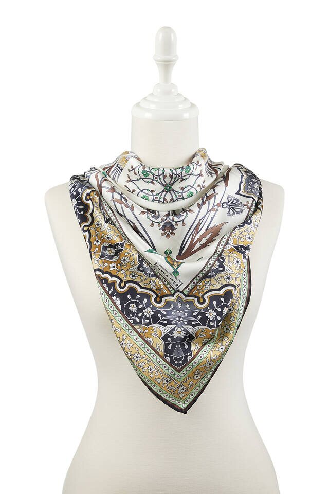 Yellow Black Candlestick A fun and classic choice where tulip patterns come together with silky fabric texture and bright and vibrant colors… Add energy to life with the silky texture of flowers! Our product: 100% silky rayon fabric offers ease of use with its dimensions of 90x90 cm.
