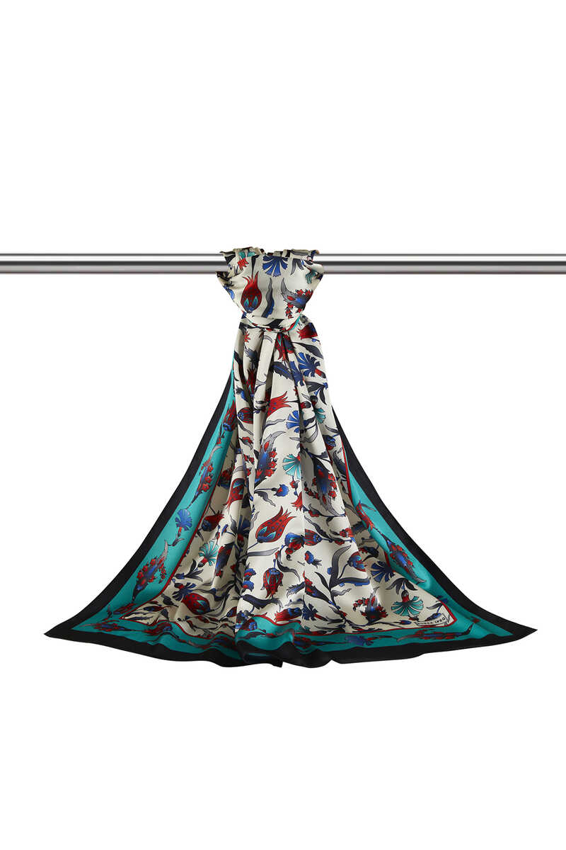Green Black Carnation A fun and classic choice where tulip patterns come together with silky fabric texture and bright and vibrant colors… Add energy to life with the silky texture of flowers! Our product: 100% silky rayon fabric offers ease of use with its 55x155cm dimensions.