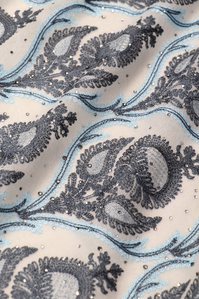 Serin kış günlerinde sizleri sıcak tutmak için özenle üretilen Gri Koyu Gri Taşlı İşlemeli Yün İpek Şallarımız özel işlemeleri, taşları ve renkleri ile dikkatleri üzerinize çekiyor. Ürünümüz % 90 yün %10 İpek içeriği, 80 x 200 cm boyutlarıyla kullanım kolaylığı sunuyor.