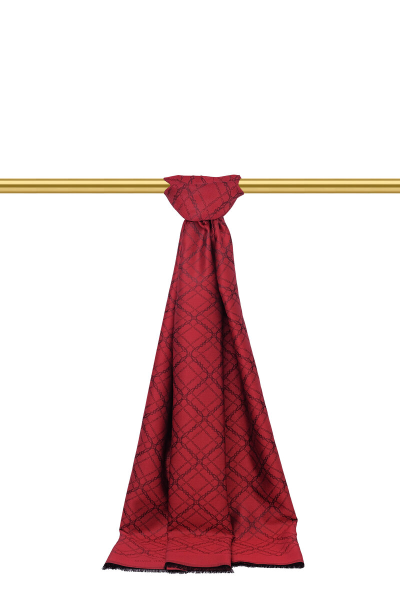 Bordo Zincir Desen Jakarlı İpek Şal
